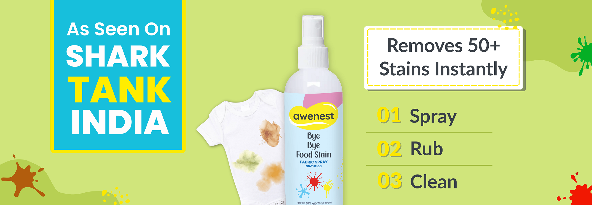 Mom of KabirRemoves food stains quickly. Spray, wipe, and carry anywhere for easy cleanups.