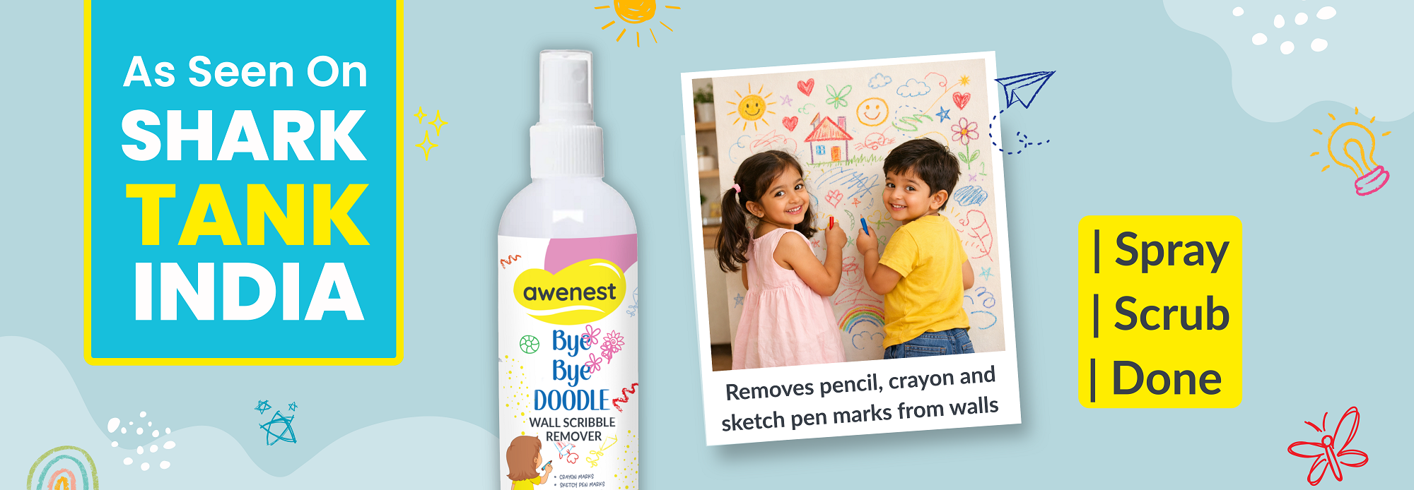 Mom of AaravEasily removes crayon and pen marks. Just spray and wipe — safe and non-toxic for kids.